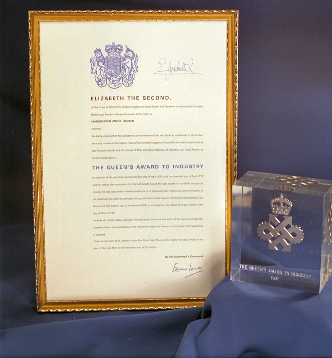 The Queens Award to Industry 1971, awarded to Manchester Liners,
