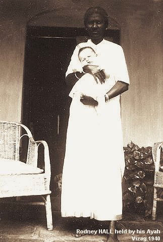| I was born in 1940 in Vizagapatam (shortened to Vizag, and now called Vishakhapatnam), on the Bay of Bengal. My father was then the chief pilot in that port, and he went on to become Harbourmaster. However, my story in India really goes back to 1906, when my paternal grandfather, Harry Hall, came to Calcutta to bring Pathé News (Pathé News produced newsreels, which were shown in cinema halls) to India for the Pathé Frères, whom he knew from his days in Paris. With him, he brought his wife, Suzanne and his 5 year old son, Herbert, my father. This was Herbert's introduction to India. When Herbert later left school back in England, he went to the nautical training ship TS Mercury before joining T&J Harrison's shipping company as a navigating cadet and later, officer. During the Depression, it was almost impossible to obtain promotion, so Herbert joined the Scindia Company. In 1934, Hebert took the opportunity to come ashore as Dredging Master in the port of Vizagapatam, where amongst other things, he constructed the breakwater at the entrance to Vizag harbour | ![]() Rodney with his Telugu Ayah |