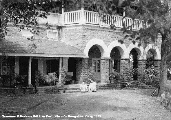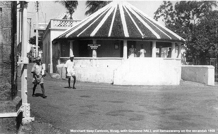 ![]() Merchant Navy Canteen, Vizag, with Simmone Hall and Ramaswamy on the verandah. 1950 |