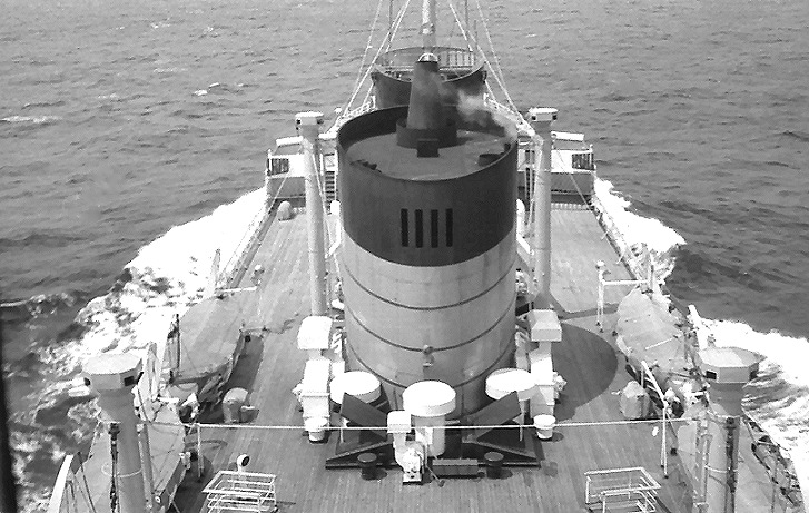 certainly always taken for passenger ships wherever they went. The forward funnel was a dummy and the Captain's accomodation occupied the root at boat deck level. The deck above housed the radio shack and the chartroom. Above that was the radar shack and above that was the bridge lookout deck. Cunard employed