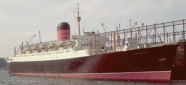 | Between 1954 and 1957, Cunard took delivery of 4 sister ships from John Brown & Co, Clydebank, for the Canadian liner service. The Ivernia was delivered in 1955, refitted in 1963 and renamed Franconia, becoming a full-time cruise vessel from 1970. Laid up in 1971, she was sold in August 1973 to the Soviet State Shipping Co. and renamed Fedor Shalyapin, taking her first voyage from Southampton to Sydney in November 1973 and was then employed on cruising in Australian waters and from European ports. In 1995 she was laid up in the Ukraine and was sold, like her sisterships, to Indian breakers, arriving at Alang in February 2004, where she was dismantled on the beach. Thus, the four sisters began their careers at the same shipyard and ended at the same breakers beach. |