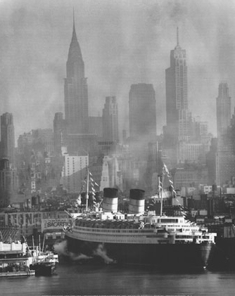 As the conflict grew, the Queen Elizabeth lay unfinished and waited for a decision to be made about her future. Many suggestions were made, and one of those quickly dismissed was that she would be sold for scrap. Some proposed to sell her to the United States or convert her into an aircraft carrier, but in the end it was decided that she would be put to best use as a troopship. Any action had to be taken fast. Being the great ship that she was, the Queen Elizabeth was a prime target for German Luftwaffe-pilots. To have this great ship sunk would have been a serious blow to the allied forces. However, conversion into a troopship could not be done in the UK, because of the threat of German bombers and saboteurs. The engines of the great liner were installed, and in February 1940, she left her berth and headed out to open waters. But with what destination? False rumours had been spread that Queen Elizabeth would go to Southampton to be fitted out as a trooper, but only the crew of the ship knew that it was not so. Some guessed that she would head for Halifax, but at this stage very few knew of her destination. Once out at sea, Captain John Townley opened his sealed orders that told him to head for New York, which he did at full speed with a crew of only 400. Later that day, a squadron of Nazi bombers were spotted over the Solent, where the Queen Elizabeth would have been travelling if she was going to Southampton. The deception of the enemy had worked.
