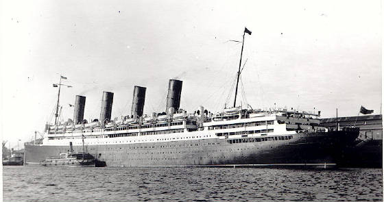Launched on 21st April 1913, she started her maiden voyage between Liverpool and New York on 30th May 1914. Her third and last voyage before the Great War, started on 11th July 1914 and she was then fitted out as an Armed Merchant Cruiser. In August 1914, she was slightly damaged in collision near the Irish coast, returned to Liverpool and was laid up until 1915. At various times between 1915 and 1919 she was used as a troopship, hospital ship and laid up. Her first voyage after the Armistice started 19th February 1919 when she was used to repatriate troops from Liverpool and Brest to New York and she made three voyages on this service.