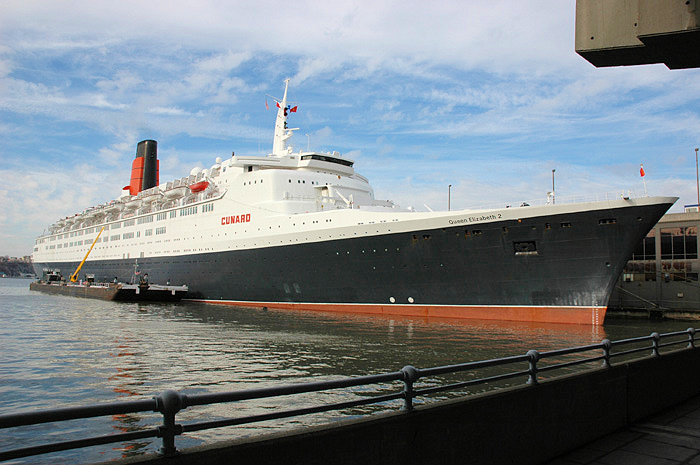 | RMS Queen Elizabeth 2 alongside in New York, 13 Jan 2008 The Queen Victoria and Qeeen Mary 2 were also in New York on this occasion - together for the first time. |